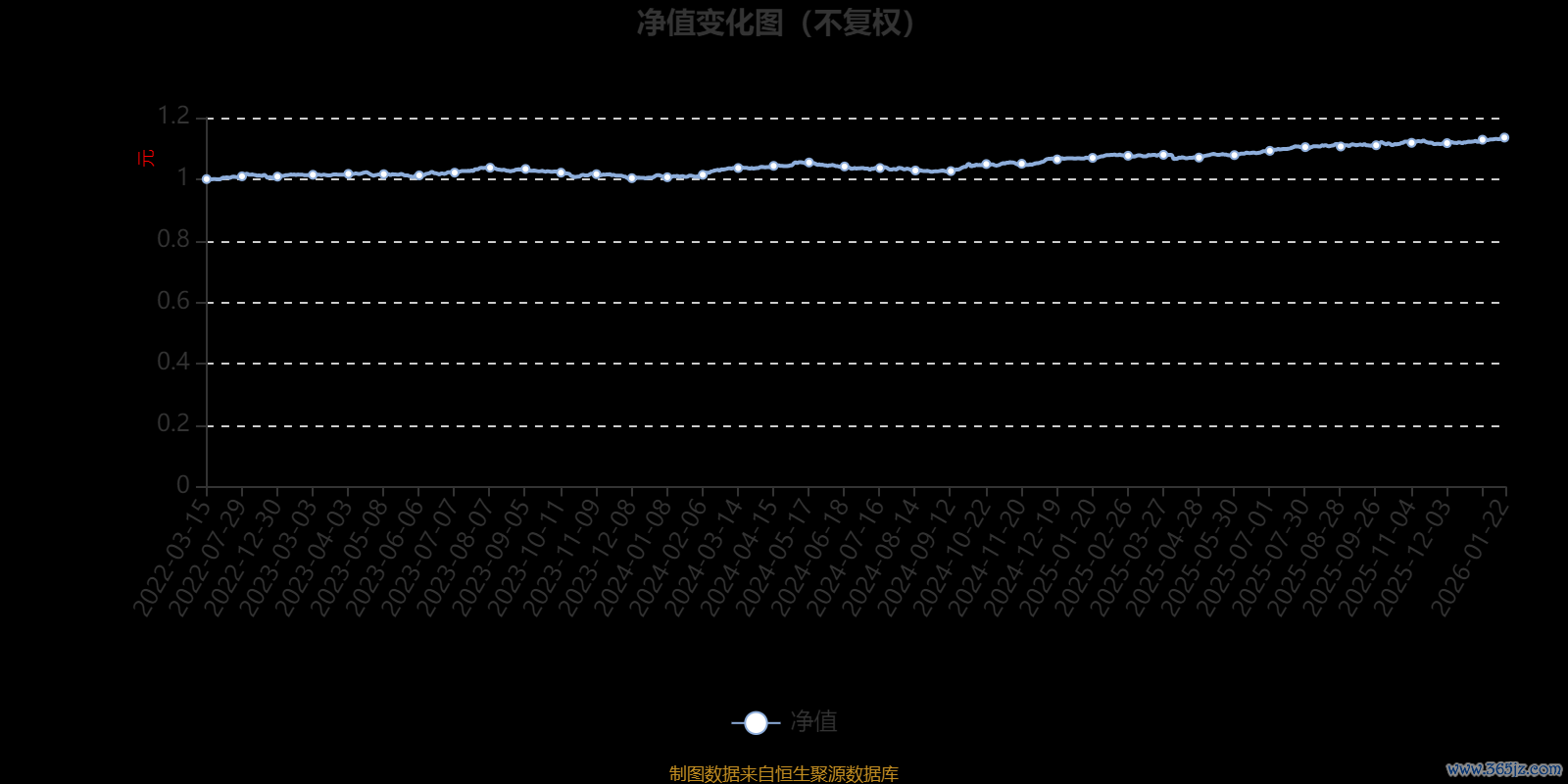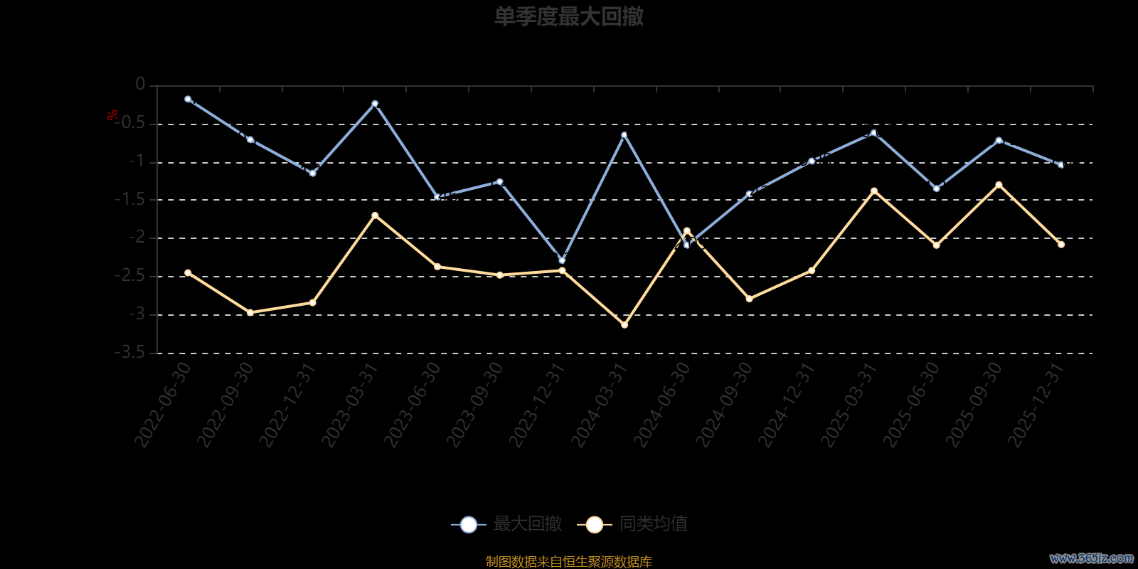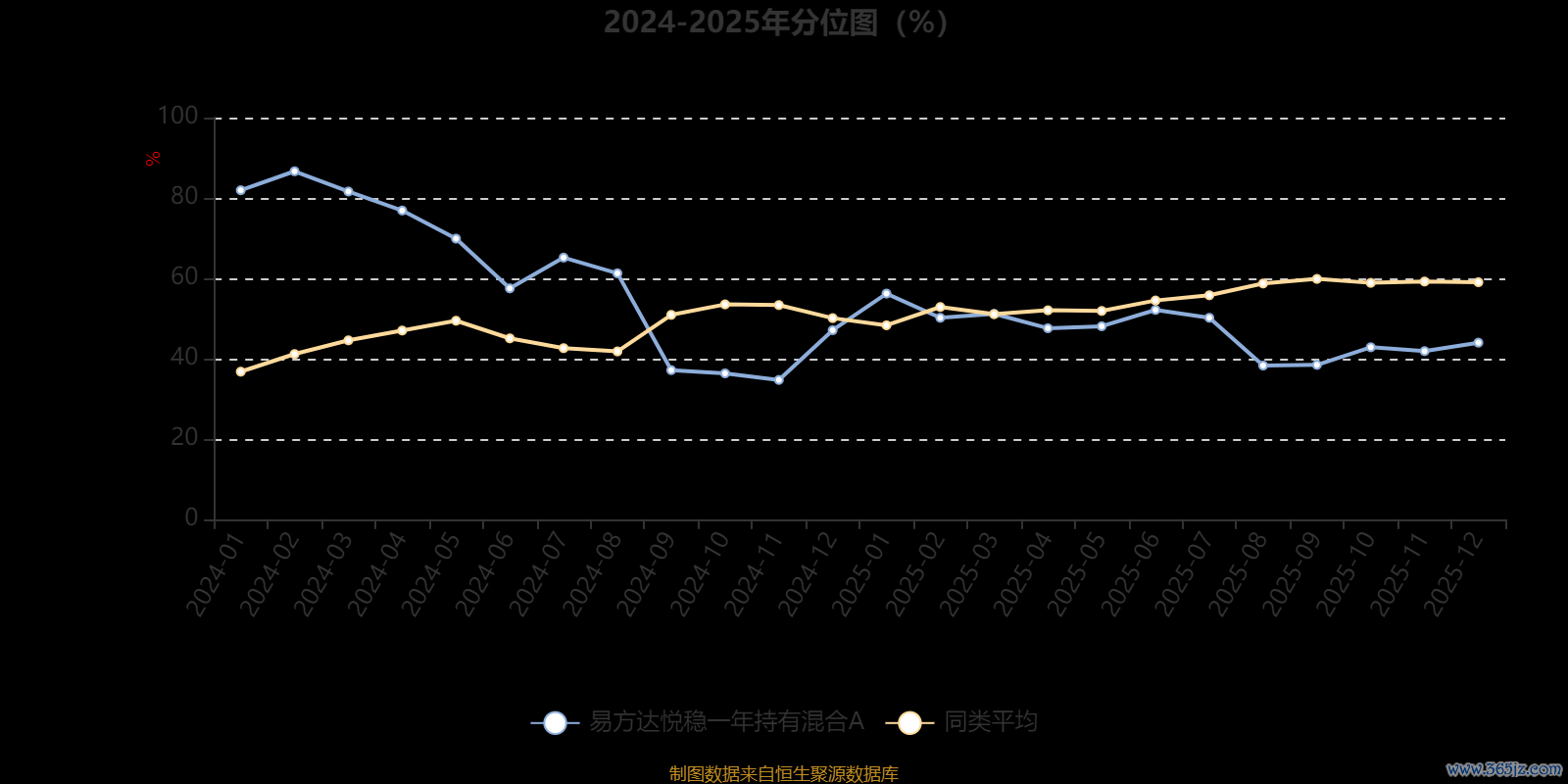 通过所选区间该基金净值增长率分位图,可以观察该基金与同类基金业绩比较情况。图为坐标原点到区间内某时点的净值增长率在同类基金中的分位数。