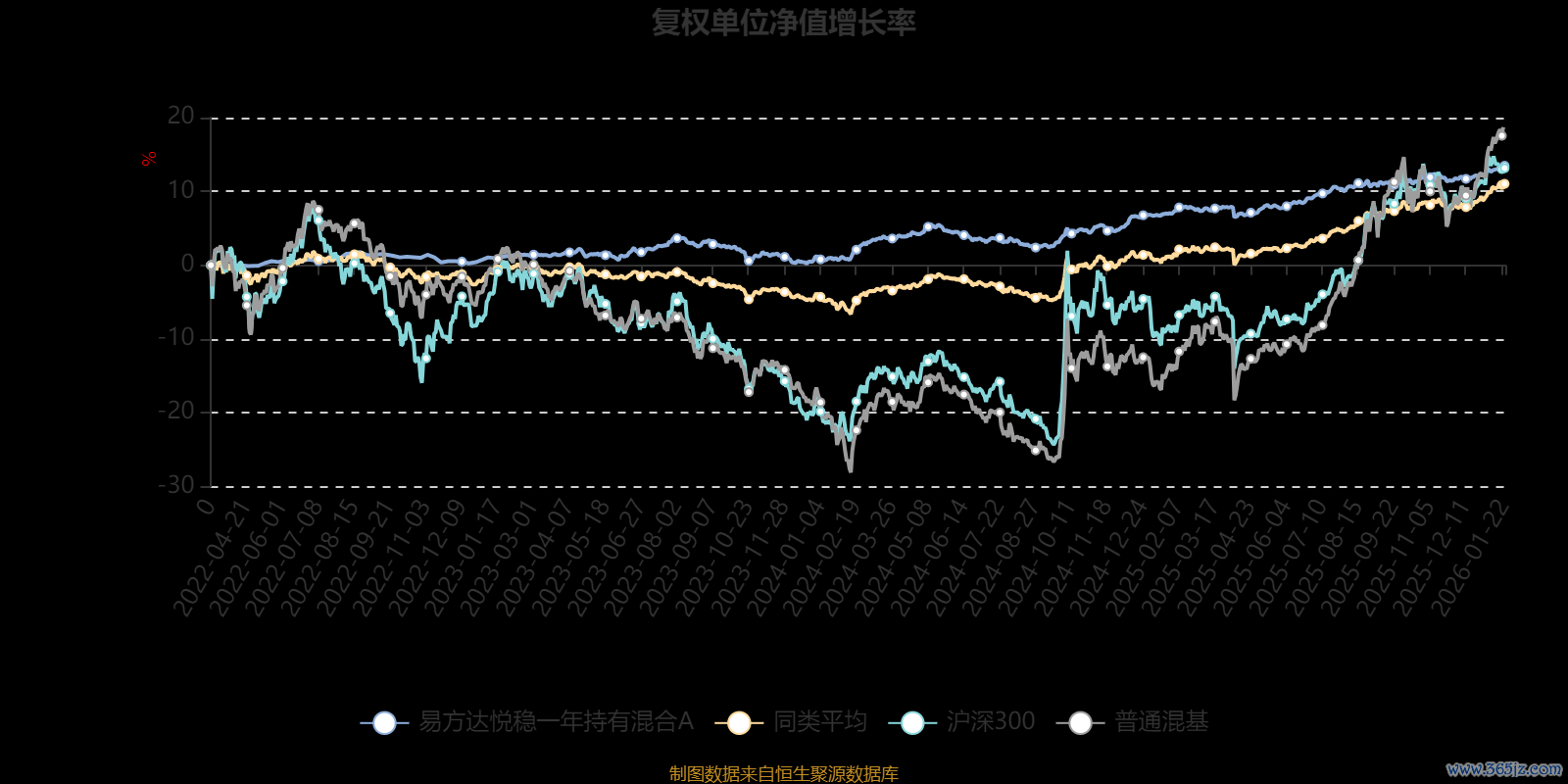 截至1月22日,易方达悦稳一年持有混合A近三个月复权单位净值增长率为1.96%,位于同类可比基金340/629;近半年复权单位净值增长率为2.54%,位于同类可比基金470/629;近一年复权单位净值增长率为6.07%,位于同类可比基金410/626;近三年复权单位净值增长率为12.24%聚创配资,位于同类可比基金261/564。